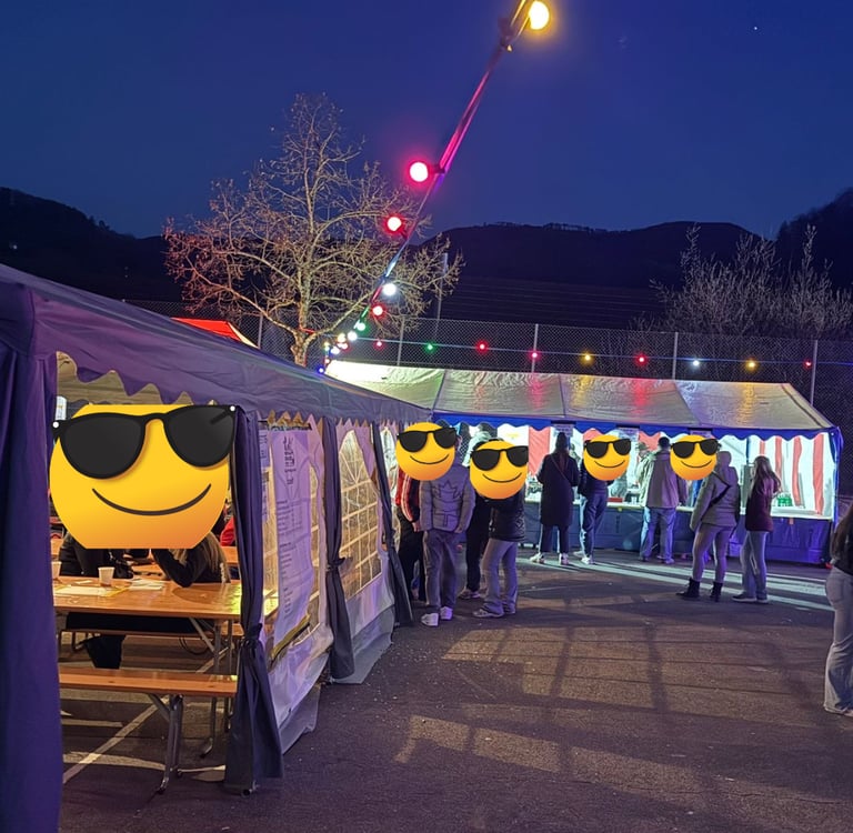 Auch in diesem Jahr griffen die Wasserfallenschränzer auf unsere grossen Festzeltzelte, für die Erstellung des Raclettestübli, zurück. Ebenfalls stand eines unserer kleinen Festzelte im Einsatz als Küchenzelt. Zusätzlich zum letzten Jahr kamen auch unsere neu ins Inventar aufgenommenen 30 und 50 Meter langen Lichterketten, für die Stimmungsvolle Beleuchtung des Festplatzes, zum Einsatz.